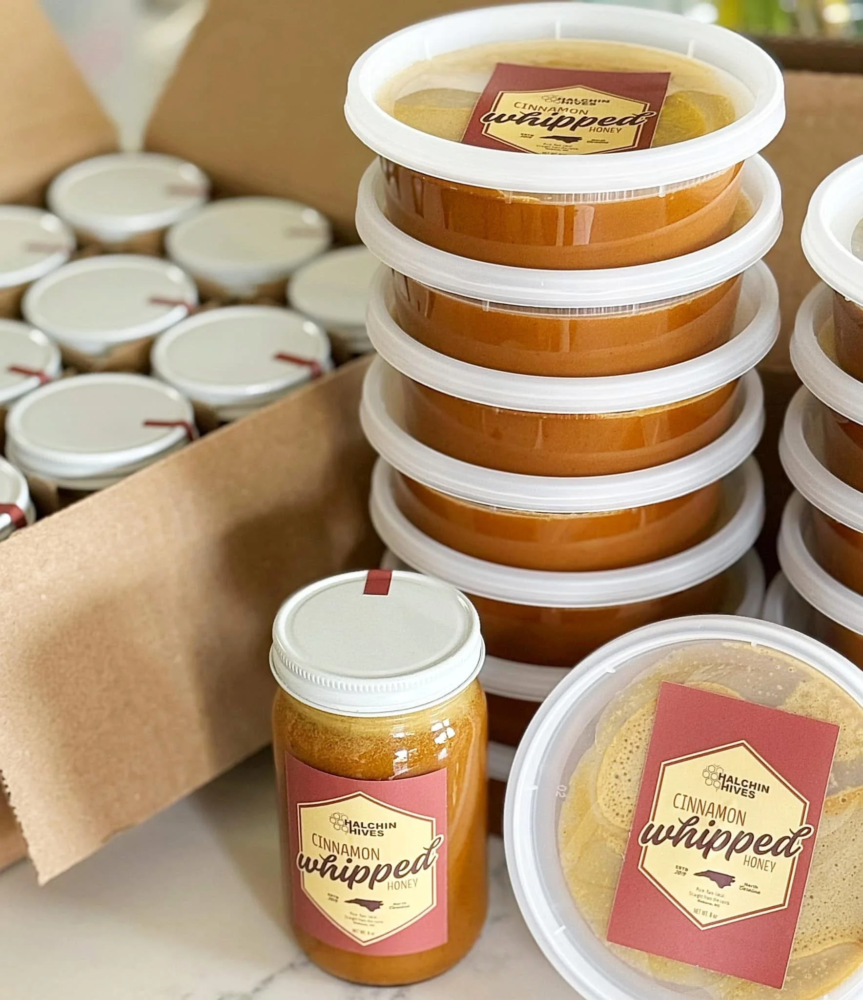 Velvety smooth and spreadable, our whipped honeys offer a no-mess, drip free, delicious way to enjoy your favorite honey. These honeys are crystallized very carefully to ensure the most buttery smooth texture and consistency. Enjoy on breakfast foods, such as toast, bagels, cinnamon buns, pancakes and more!