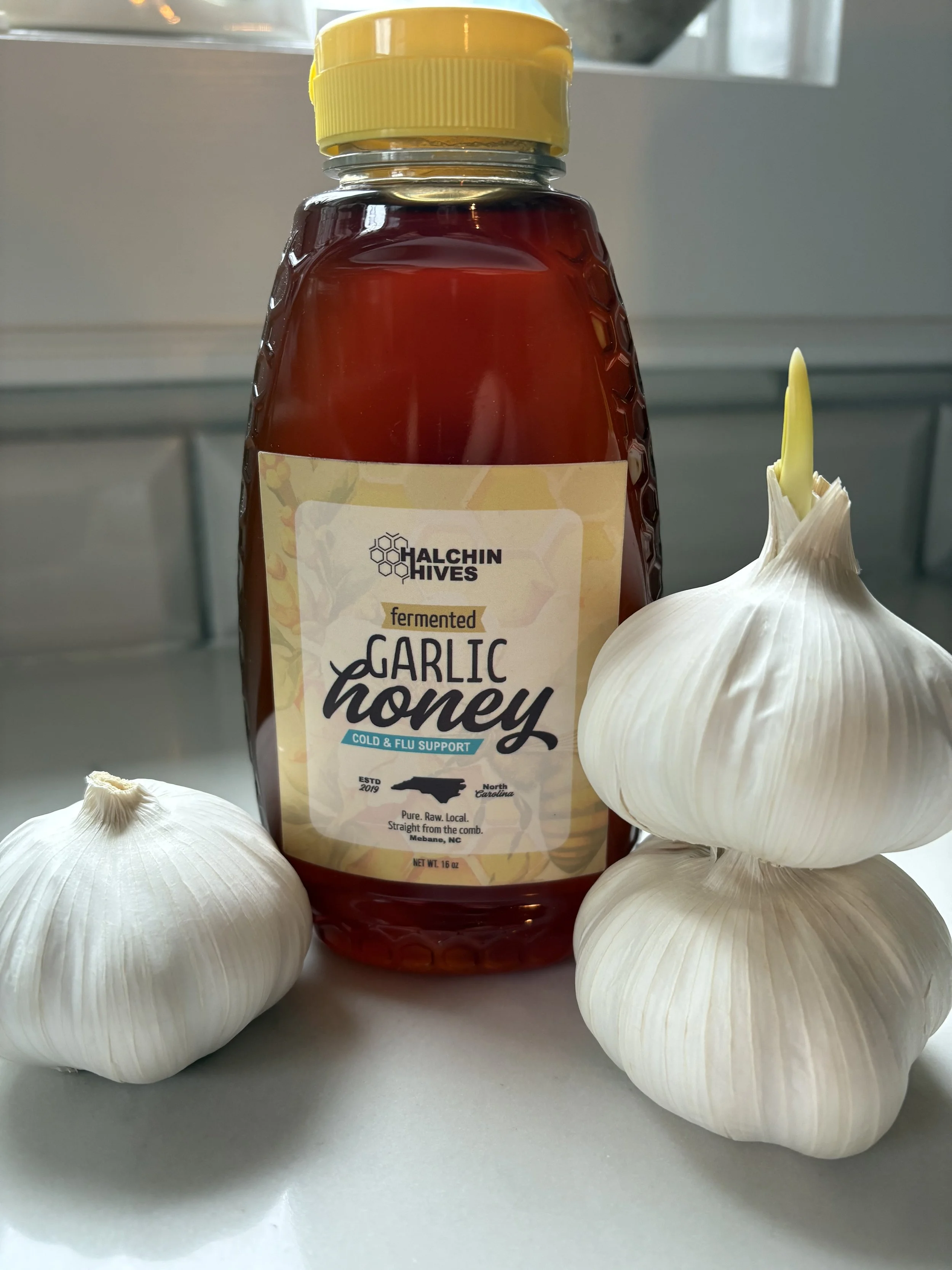 Rooted in the idea that less is more, our fermented garlic honey was crafted to support. We simply combine gallons of garlic and honey and let nature do the rest. This surprisingly wonderful pairing creates a finished product that is the best of everything. Perfect for chicken, pizzas, stir fries, or by the spoonful during cold and flu season. This honey is bold in flavor but amazingly balanced.